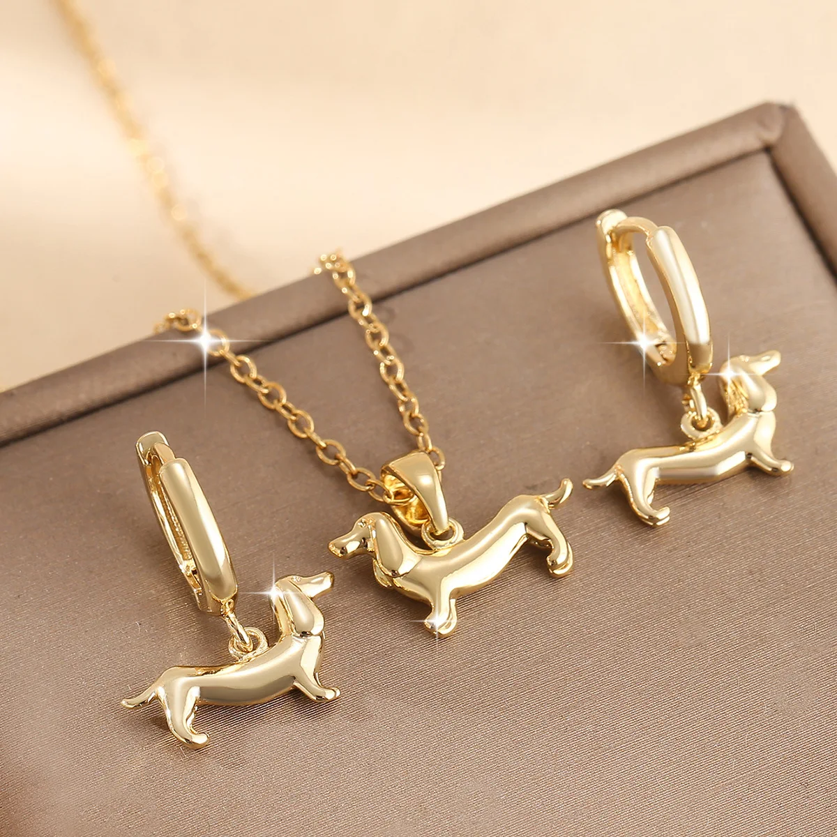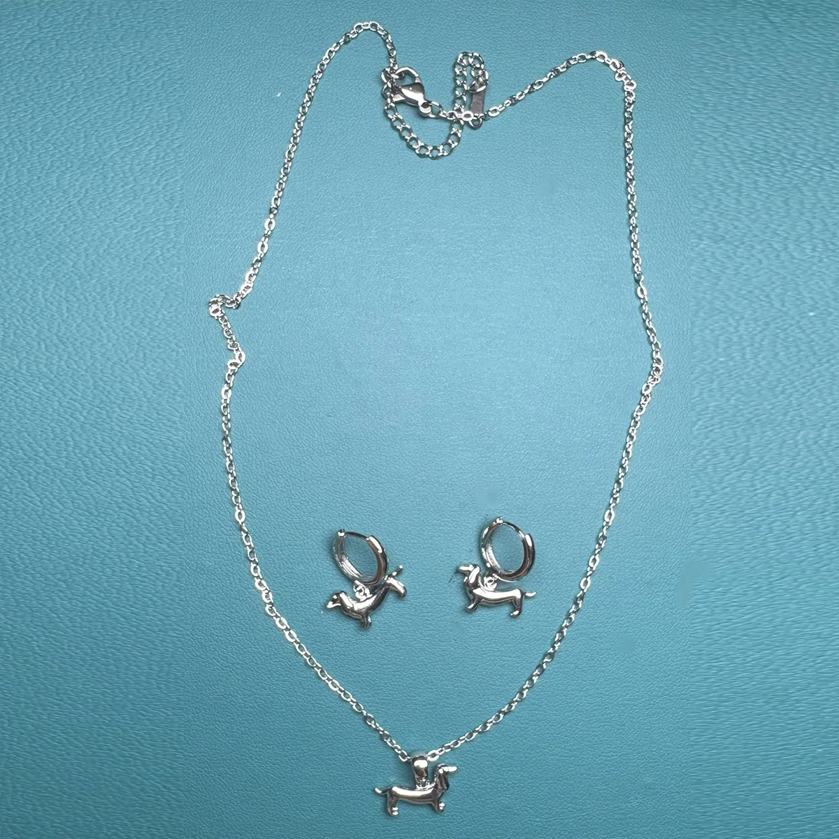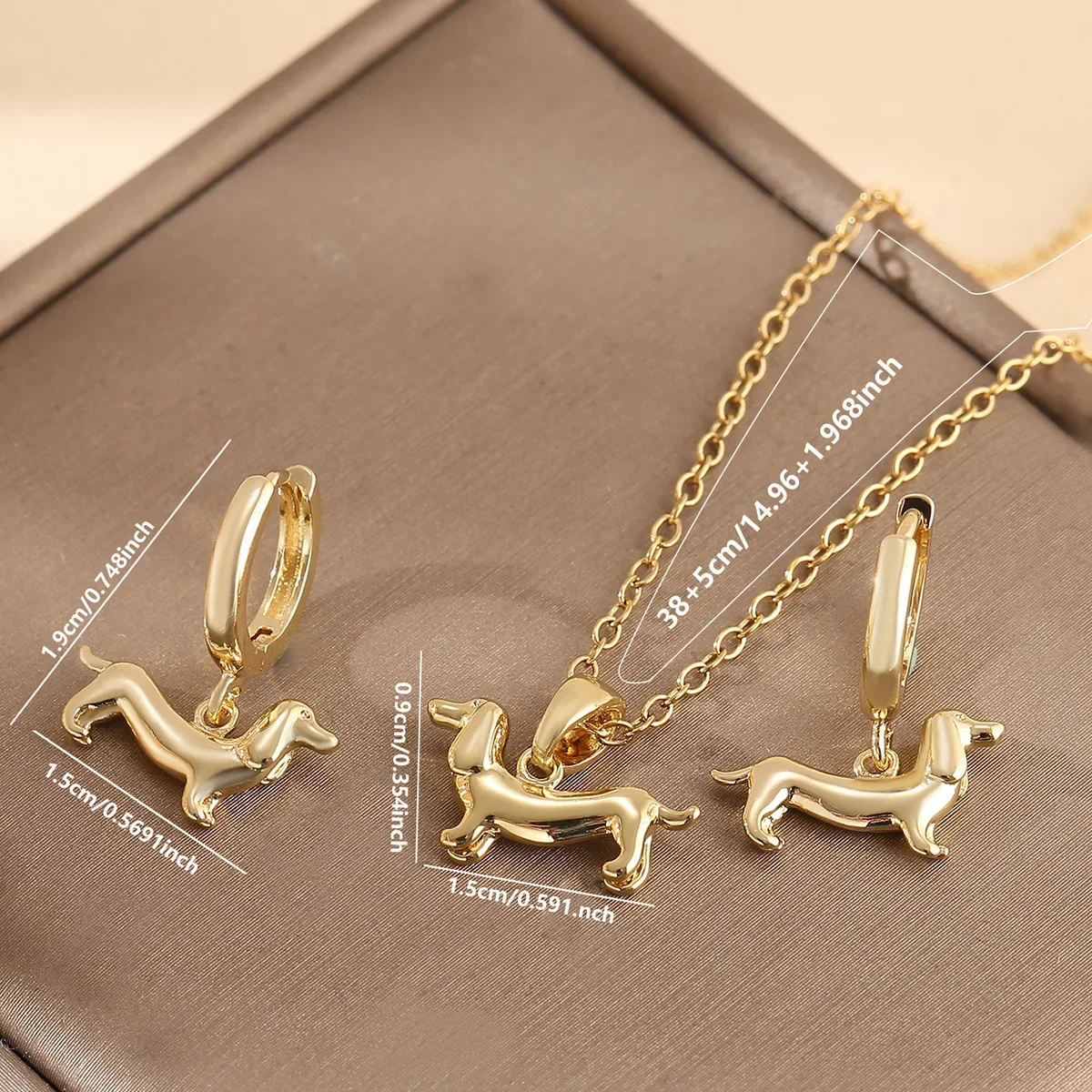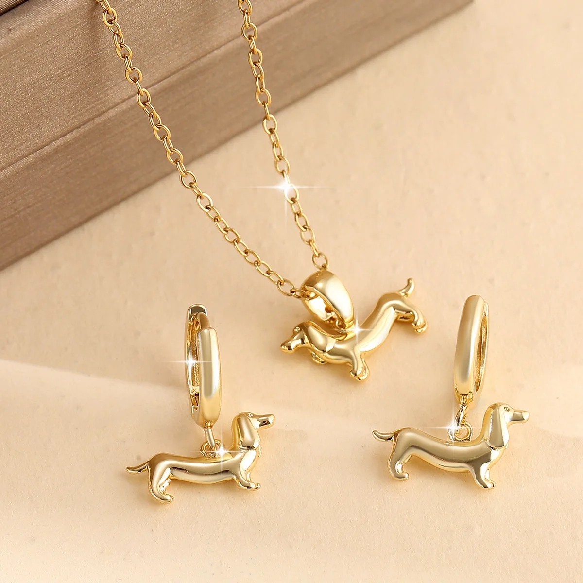 Cute Dachshund Pendant Set, Electroplated Collar Necklace and Matching Earrings, Unisex Animal-themed Jewelry for Pet Owners