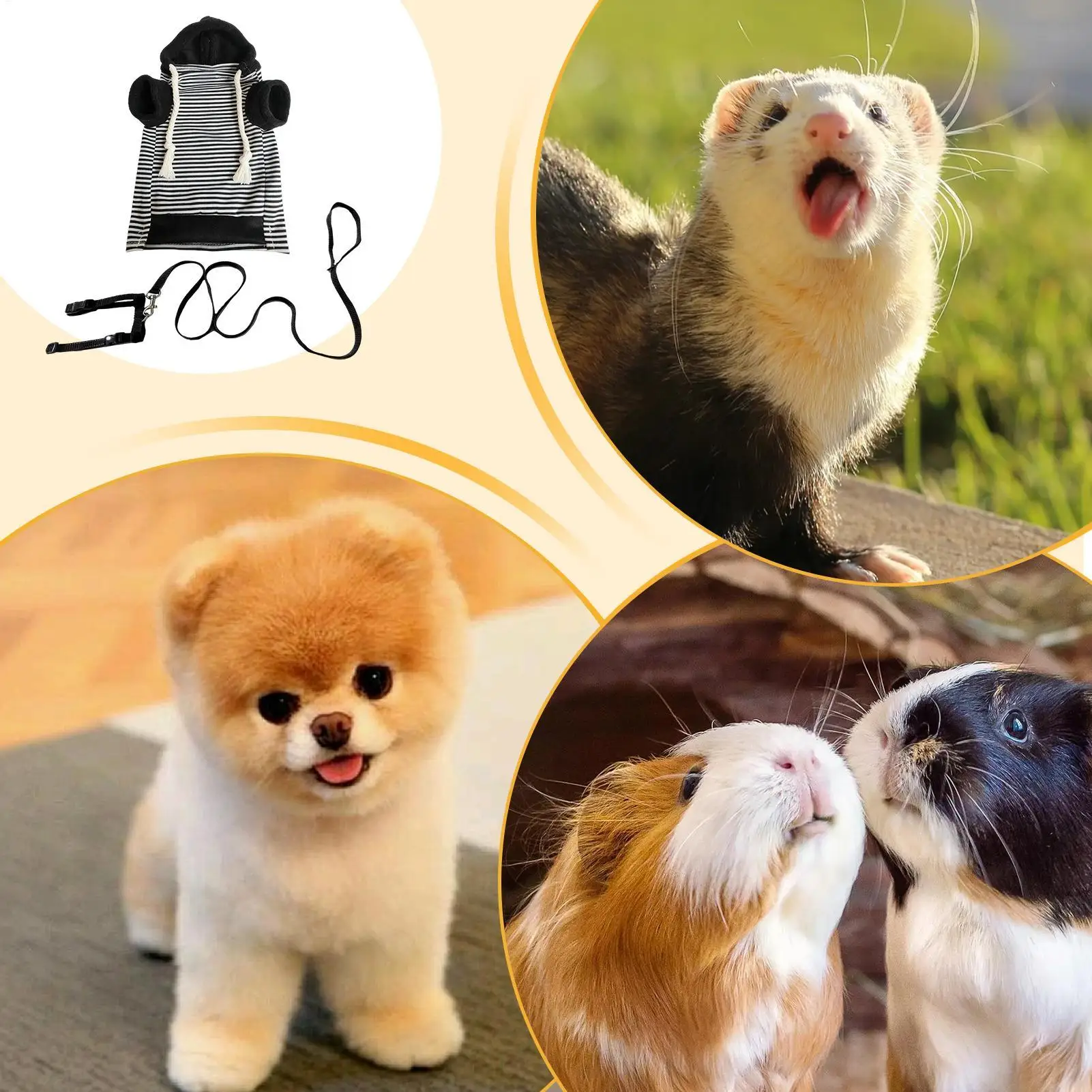 Ferret Hoodie With Harness Soft Comfortable Fun Sweatshirt Small Animal Ferret Sweater